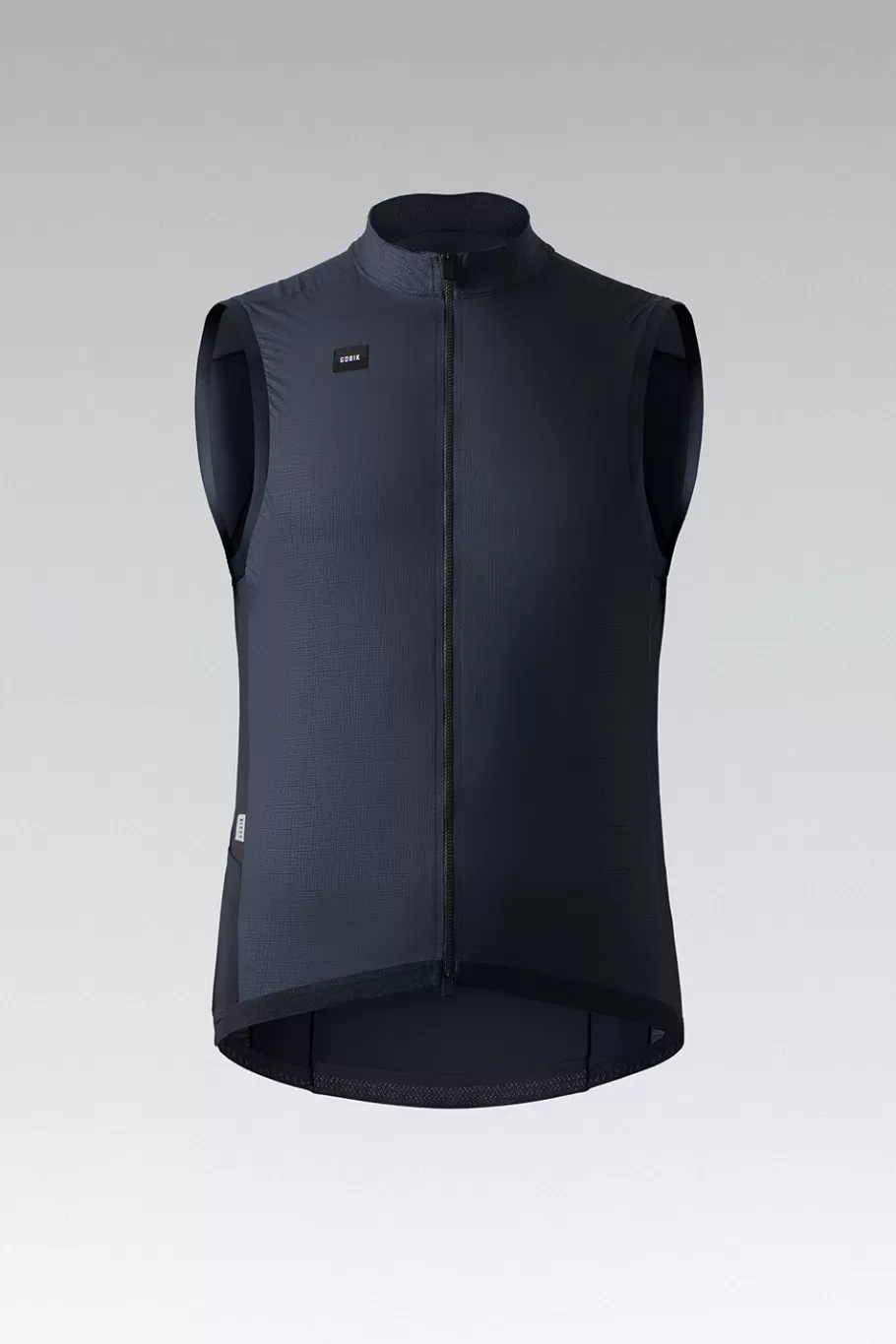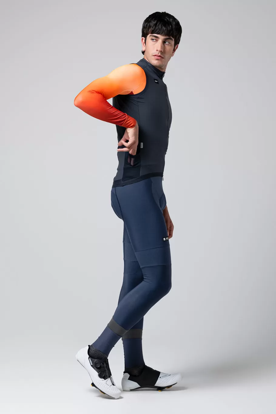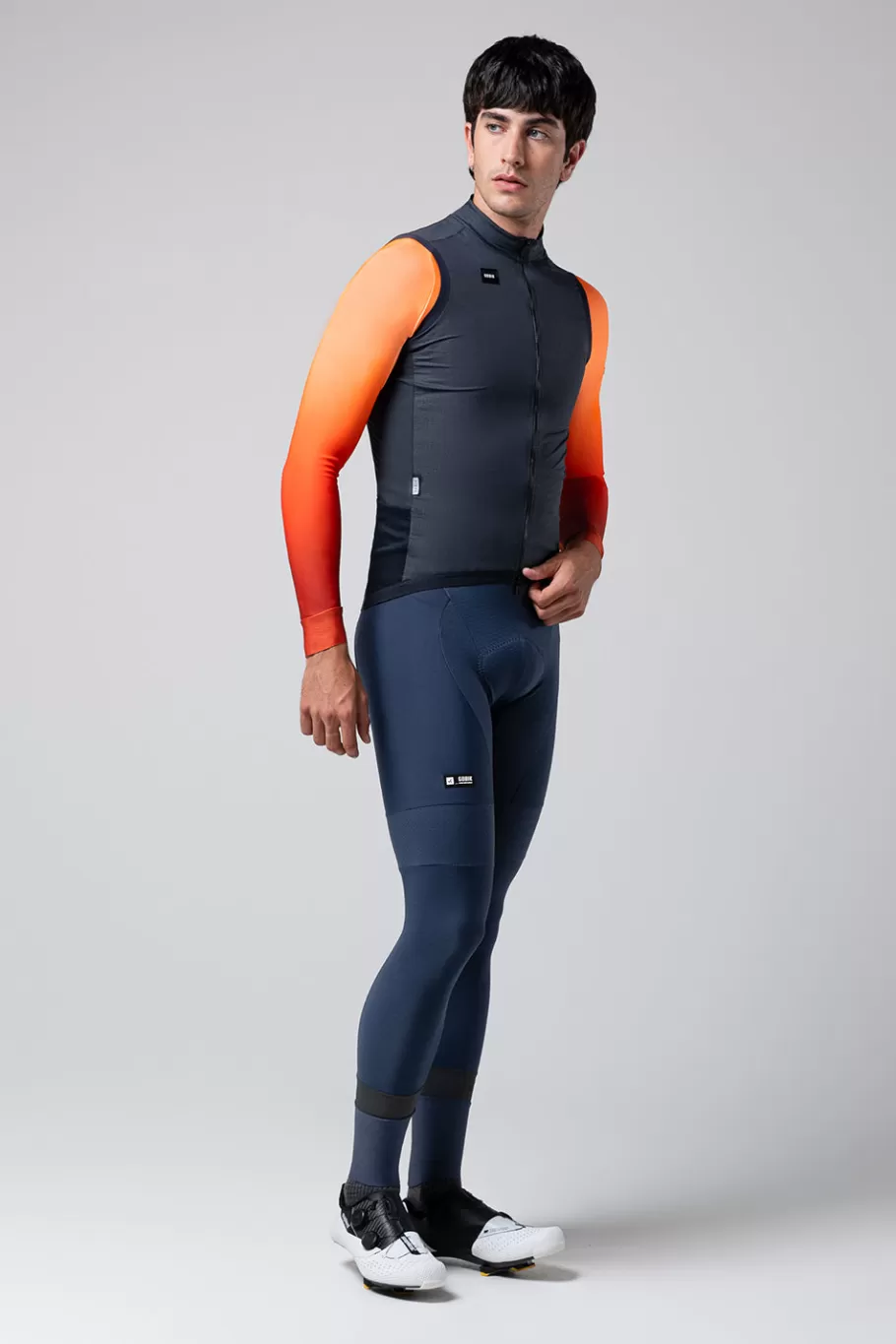 Ultraleicht und faltbar, mit einem neuen optimierten Muster, das die Aerodynamik auf dem Fahrrad verbessert. Es kombiniert Nylon und Elastan-Gewebe, die wirksamen Schutz mit großer Anpassungsfähigkeit bieten, dank seiner optimalen Elastizität. Das Rückenteil besteht aus einem ultraleichten, elastischen Gewebe, das die Restwärme ableitet, wenn man die Intensität erhöht. Bei dieser neuen Entwicklung wurden die Öffnungen am Rücken neu gestaltet, um einen einfachen Zugang zu den Trikottaschen zu ermöglichen.