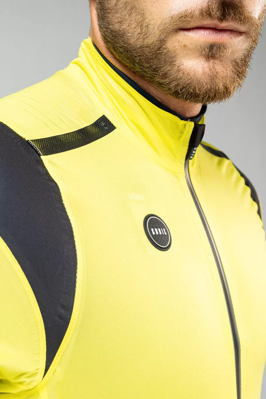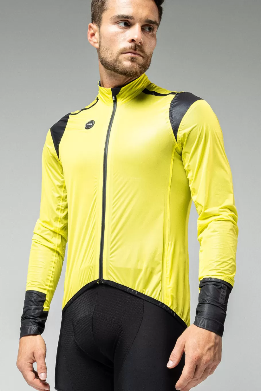 Ultraleichte, wasserdichte Jacke für den Straßenradsport. Der perfekte Verbündete bei plötzlichen Wetterumschwüngen, wie sie z. B. auf einem Bergpass oder bei einer langen Herbst- oder Frühlingsfahrt auftreten können. Sie hält dich bei Wind und leichtem Regen auf Trab.