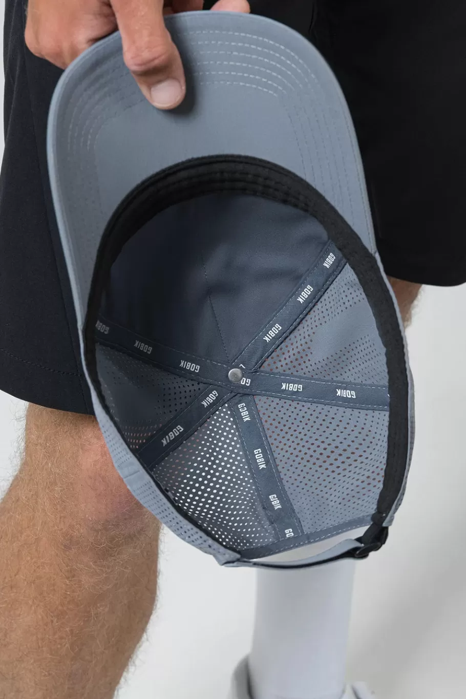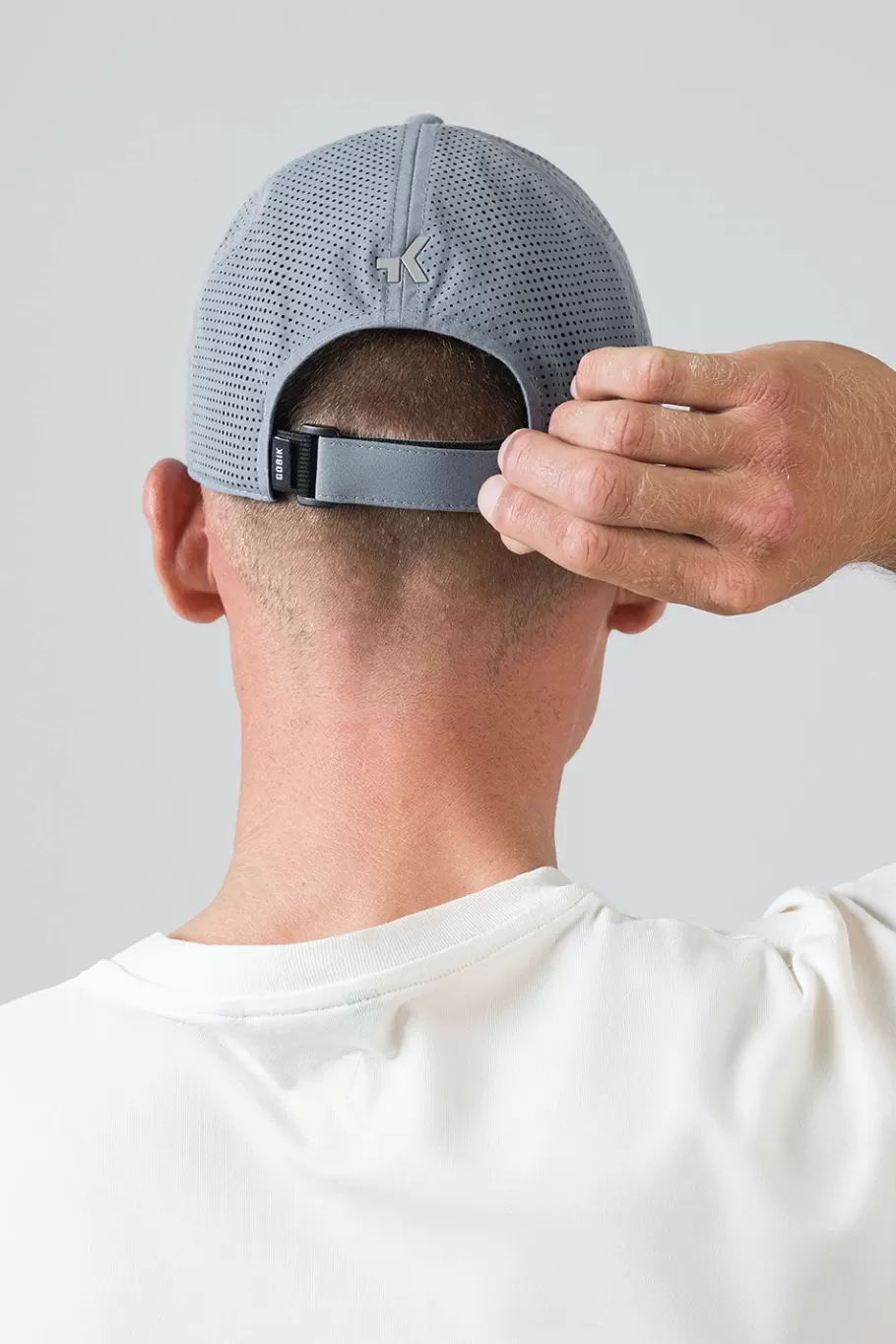 Klettverschluss und elastischer Riemen auf der Rückseite.