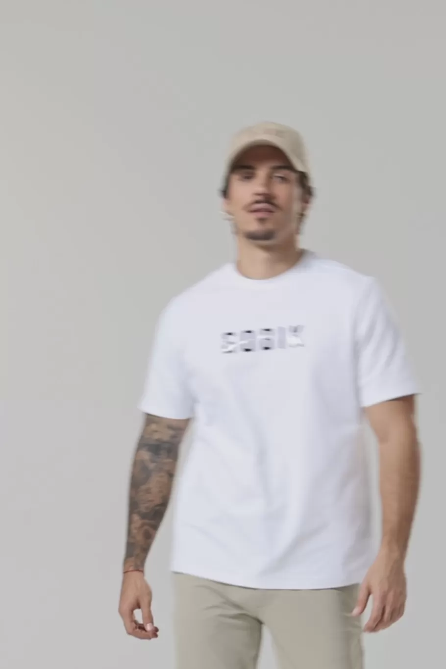 Gesticktes Logo in zwei Höhen auf der Vorderseite.