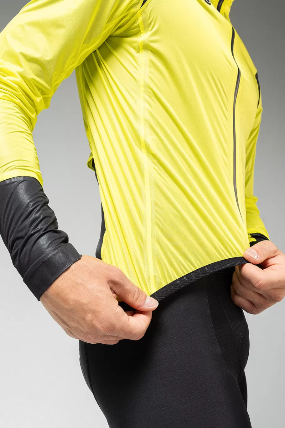 Ultraleichte, wasserdichte Jacke für den Straßenradsport. Der perfekte Verbündete bei plötzlichen Wetterumschwüngen, wie sie z. B. auf einem Bergpass oder bei einer langen Herbst- oder Frühlingsfahrt auftreten können. Sie hält dich bei Wind und leichtem Regen auf Trab.