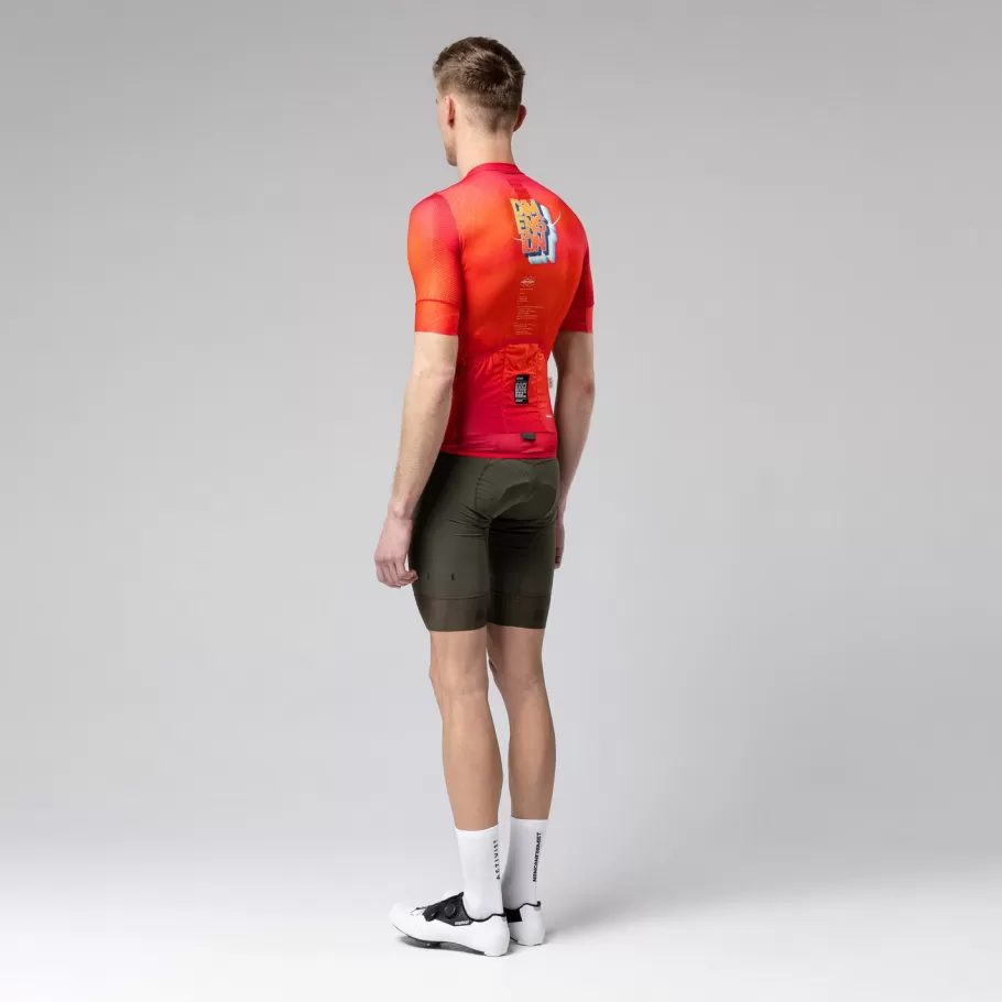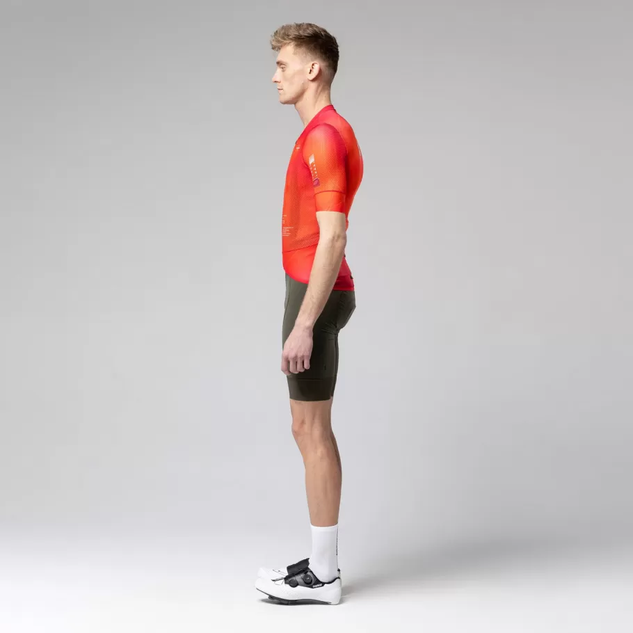 A RADTRIKOT die wie keine andere maximale aerodynamische Leistung und hervorragende Atmungsaktivität kombiniert. Selbst die heißesten und feuchtesten Bedingungen können dir nichts anhaben. Das Mesh-Gewebe und der körpernahe Schnitt sorgen für einen Second-Skin-Effekt, der den Schweiß effektiv ableitet und trocknet. Die einzigartige Kombination aus strategisch platzierten, handgenähten Stoffen reduziert den Luftwiderstand auf der Vorderseite und fördert die Luftzirkulation auf der Rückseite.