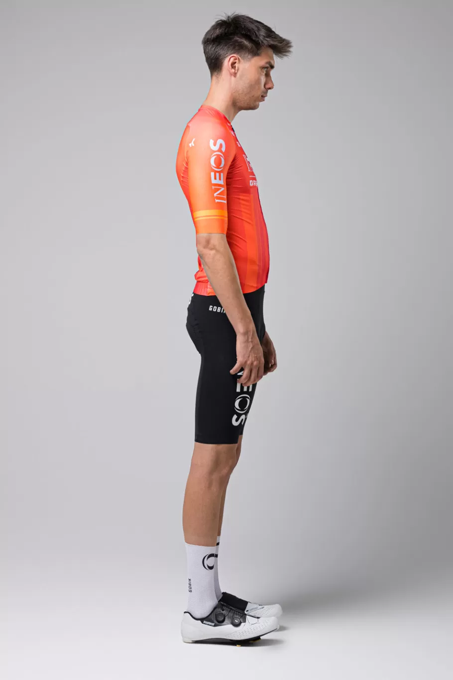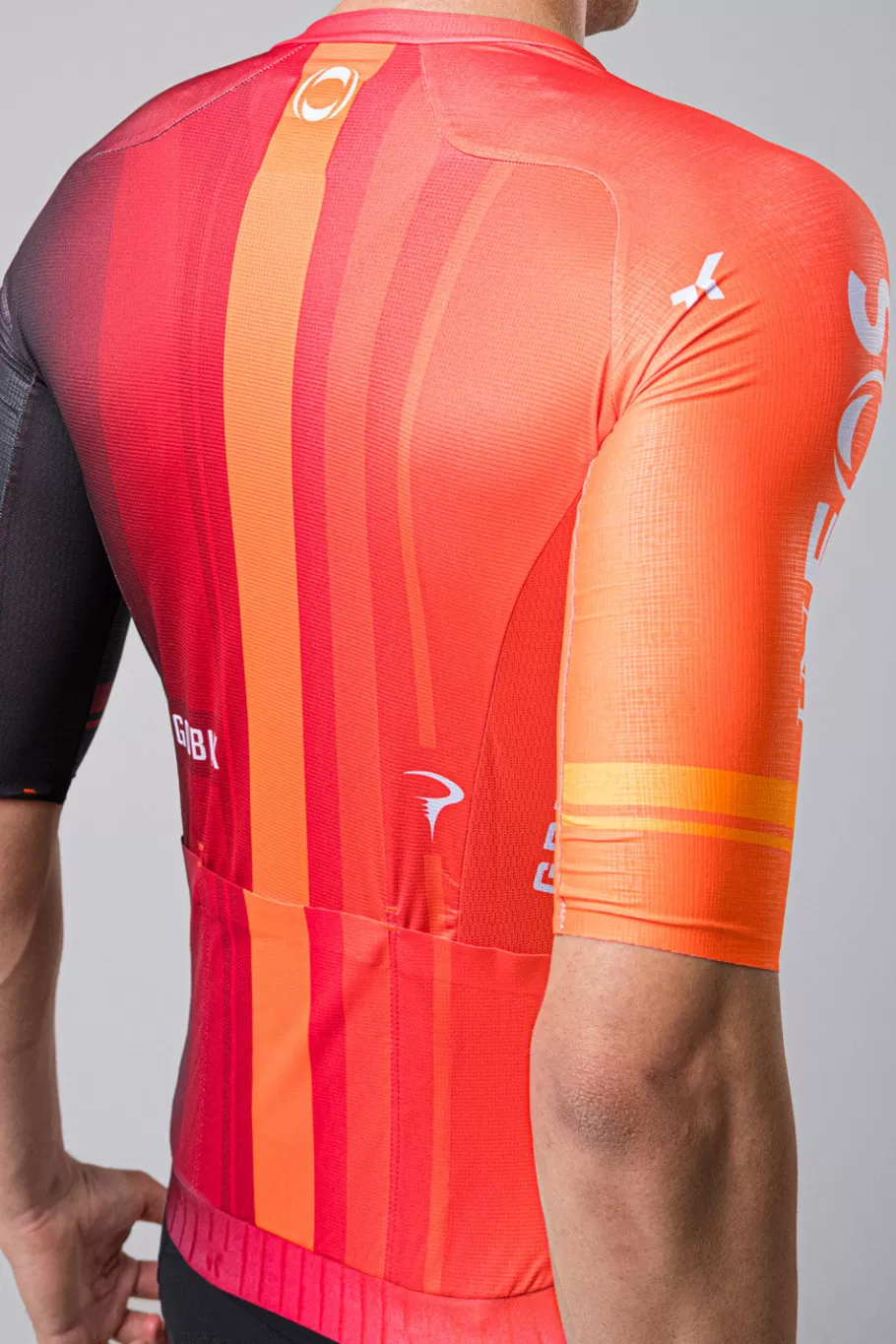 Exklusiv entwickelt, um eine überlegene aerodynamische Effizienz zu erreichen. Ultra-fit Schnitt mit ergonomischem Muster, die Verringerung der Anzahl der Nähte durch Verklebung Prozesse, um das geringste Gewicht und absoluten Komfort ohne Reibung bieten.